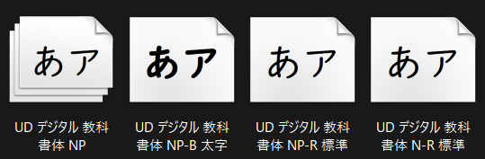 UD デジタル 教科書体 NP-Bや-Rの場合、UD デジタル 教科書体 NPに統合されています。