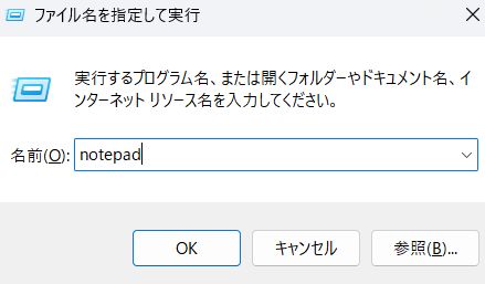 ファイル名を指定してメモ帳を実行