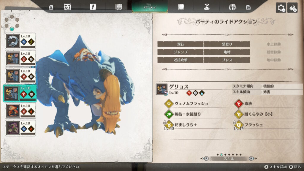 ゲリョスの孵技:水鏡割りがテクニックタイプなのでテクニックタイプのモンスターは要らないと思っています。