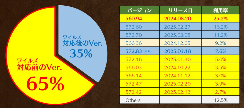 ワイルズ公式が2025年4月時点でのドライバー使用率を調査し、最新バージョンにして下さいと案内していました。